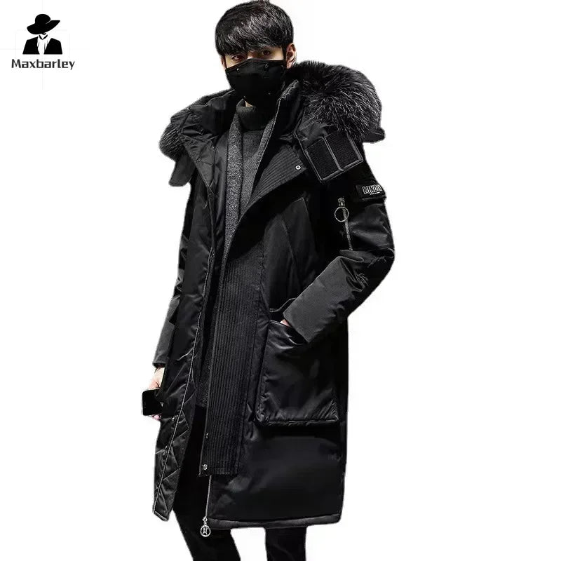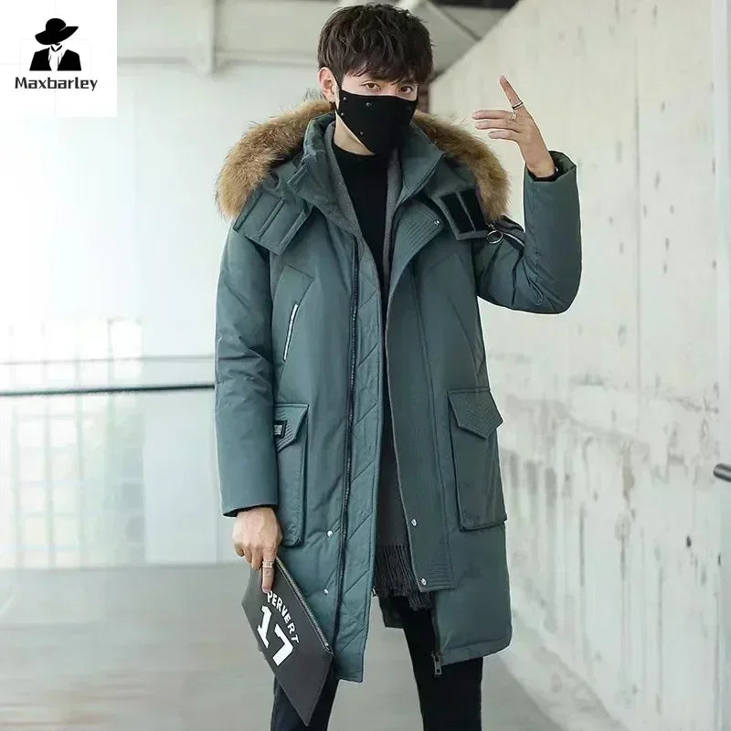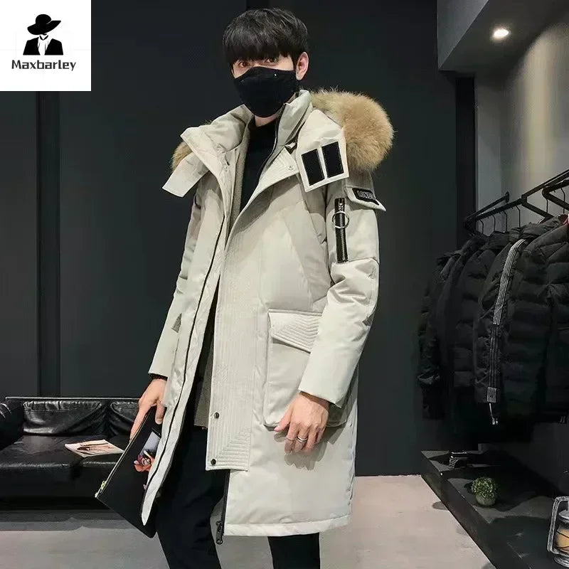 Winter Large Collar Men's Parka Down Jacket 2024 Men's Mid Length Thickened Warm White Duck Down Men's And Women's Outerwear